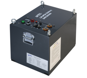 - LiFePO4 Batterie mit Batteriemanagementsystem (BMS) in einem kompakten Stahlgehäuse